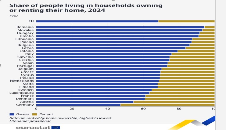 Η ιδιοκατοίκηση στην Ελλάδα καταρρέει με κυβερνητική ευθύνη. Το 2010, πριν τα μνημόνια και την κοινωνική αποδιάρθρωση, το 77,2% του πληθυσμού ζούσε σε ιδιόκτητη κατοικία. Το 2019, μετά από μια δεκαετία λιτότητας, ιδιωτικού χρέους και τραπεζικής πίεσης, το ποσοστό είχε ήδη μειωθεί στο 75,4%. Το 2024, σύμφωνα με τα στοιχεία της Eurostat, η ιδιοκατοίκηση υποχωρεί στο ~69,7%