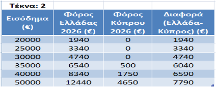 Γ. Φόρος σε Ελλάδα και Κύπρο συγκριτικά με δυο τέκνα:
